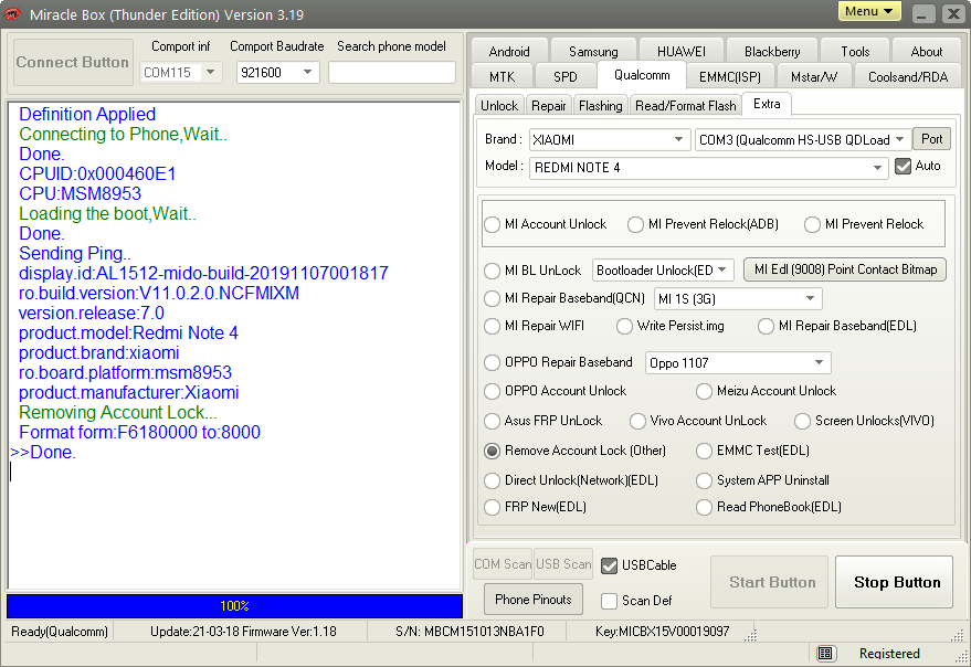Provide laptop/pc/notebook windows os xp/7/8/10 and usb cable data. Rom global redmi note 4x mido You will see red led light blinking. Boot into edl mode via fastboot method. Type the following command and press the enter button to check whether the device is connected or not.